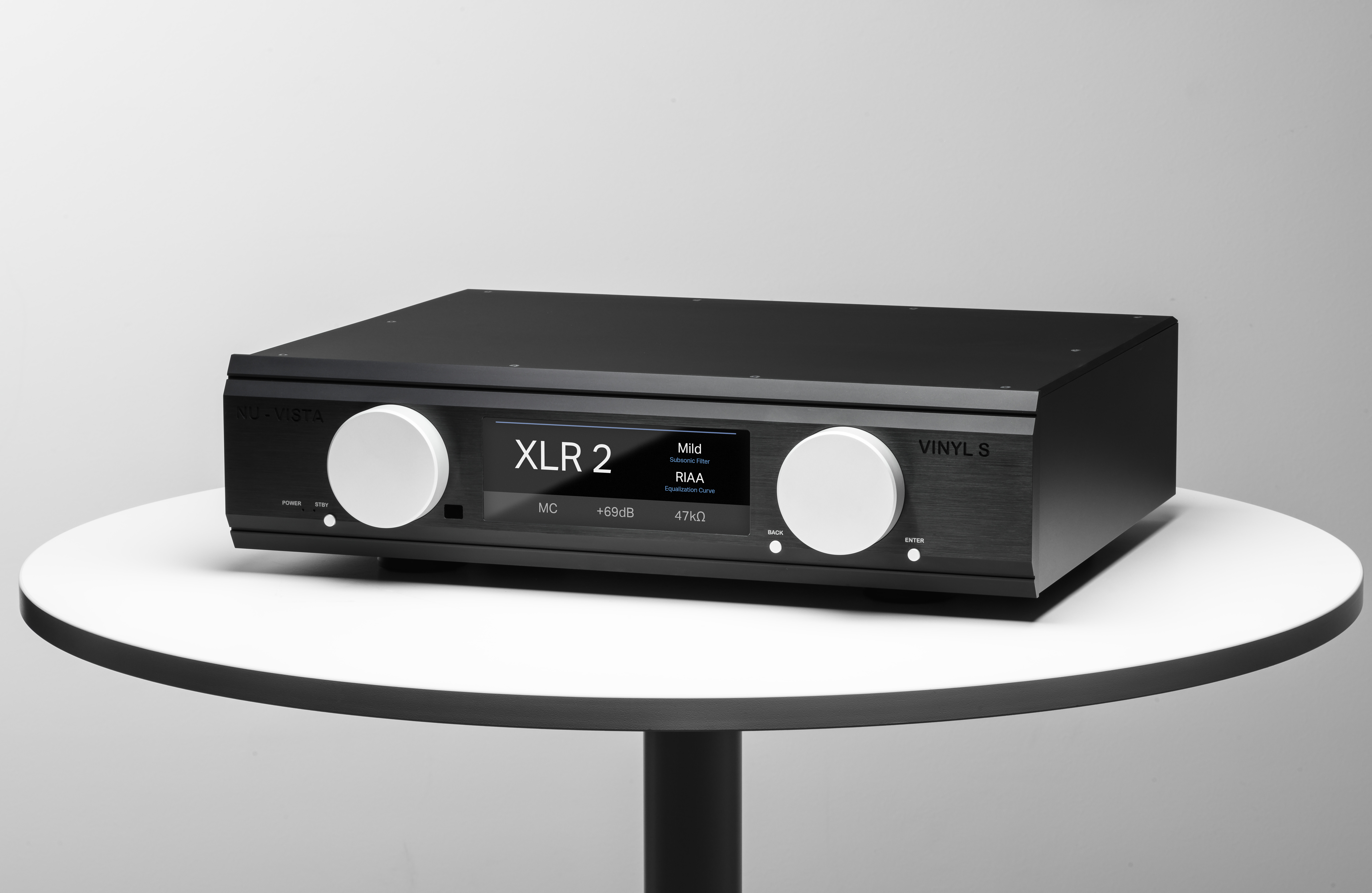 At its core, the Vinyl S features fully balanced, discrete Class A circuitry, mirroring the acclaimed Nu-Vista Vinyl 2. Its phono preamplification includes three gain stages and a split-passive EQ design, ensuring precise RIAA, DECCA, and COLUMBIA curve reproduction. Each channel has its own board and balanced Nuvistor stage, delivering ultra-low noise and distortion. RCA and XLR outputs operate independently, allowing simultaneous use.