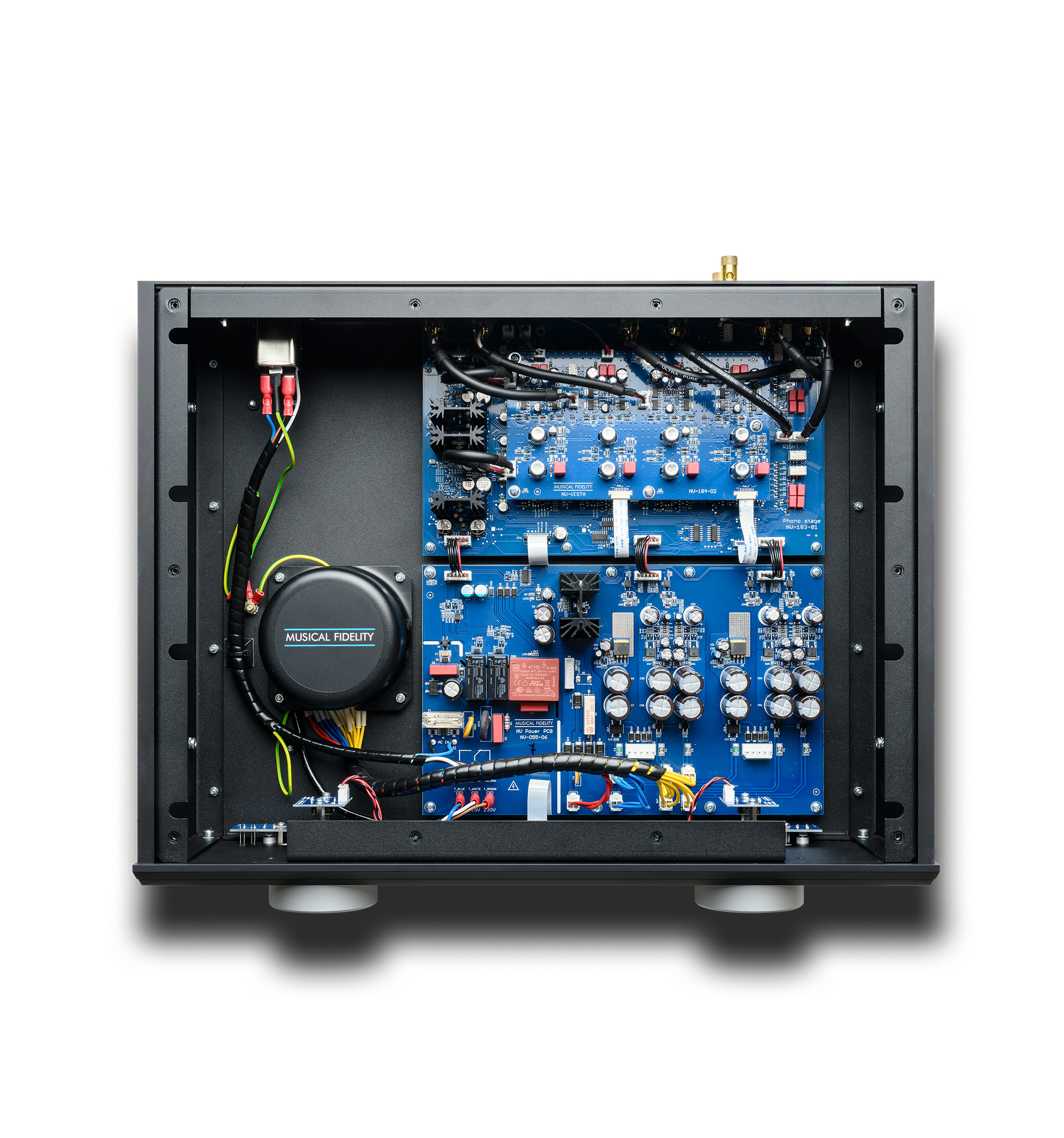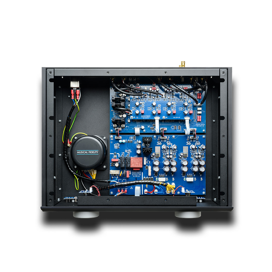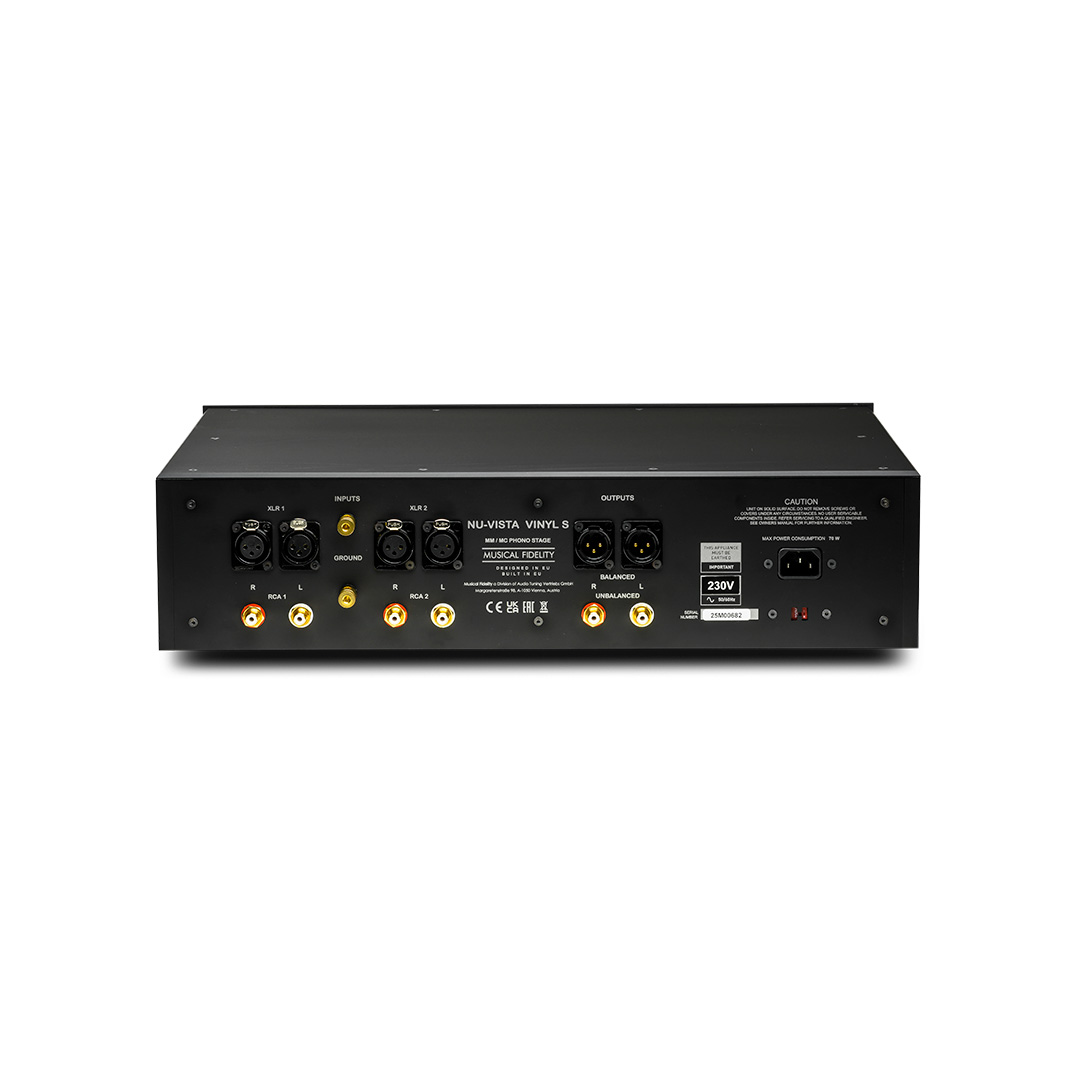Musical Fidelity’s Super Silent Power Transformers power the Vinyl S, featuring EMI filters, DC blockers, and encapsulated toroidal transformers for minimal interference. Each channel benefits from its own symmetrical low-noise power supply, with passive filtering and regulation. DC servos maintain optimal operating conditions, ensuring every microvolt from your cartridge is handled with the utmost care.