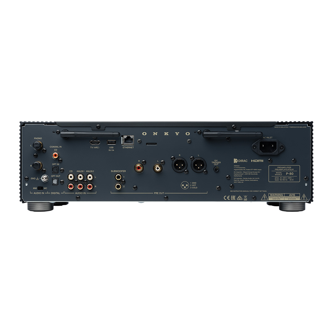 The P-80 includes Dirac Live Room Correction Suite Stereo, offering frequency response correction from 500Hz to 20kHz and support for Dirac Live Bass Control via dual subwoofer outputs. This powerful feature adapts playback to your unique room acoustics, delivering a truly immersive and personalised listening experience.