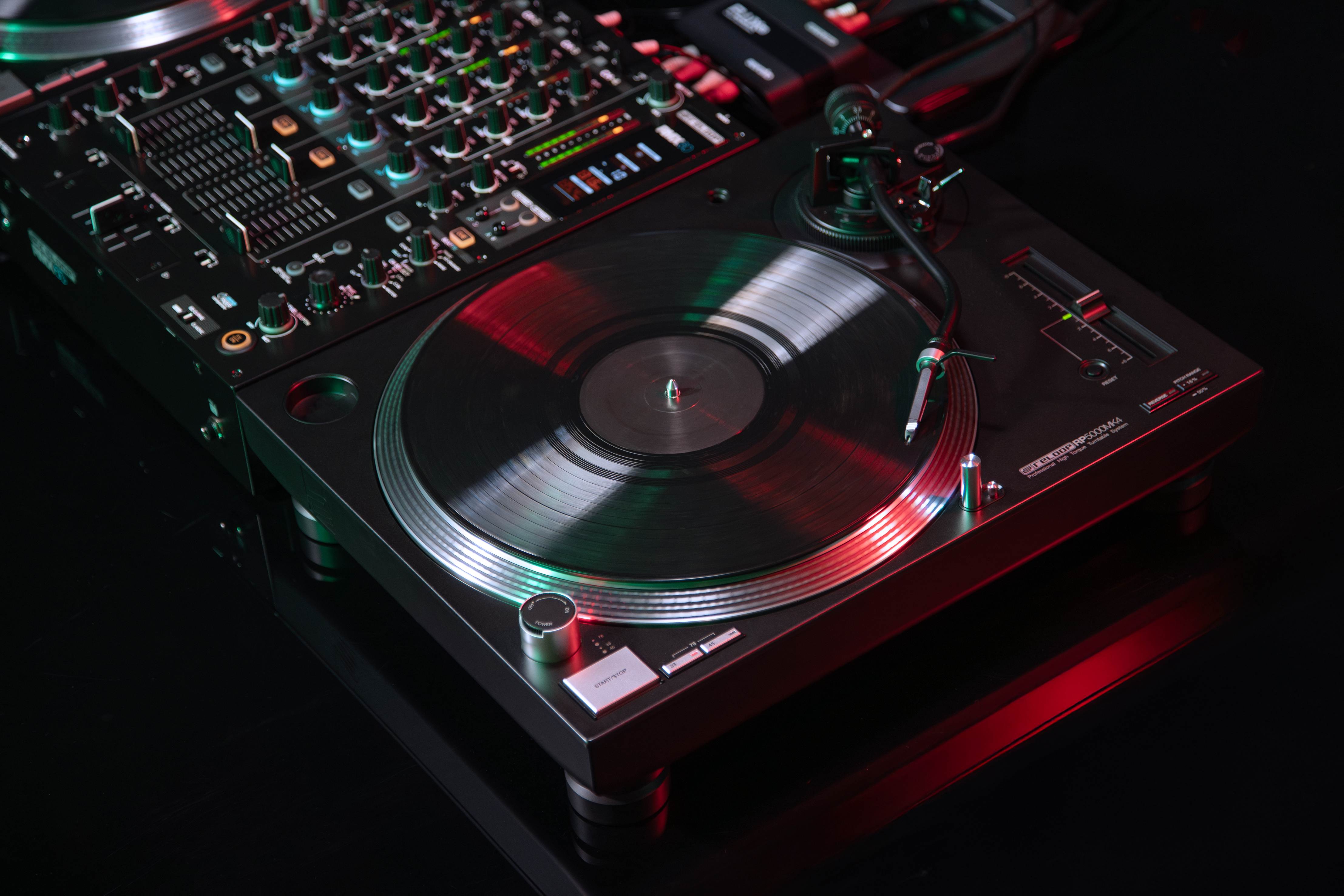 Offering three speeds (33⅓, 45 and 78 rpm), selectable pitch ranges (±8%, ±16% or ±50%) and a reverse switch, the RP‑5000 MK4 adapts effortlessly to club mixing, home practice or advanced scratching. The ergonomically placed controls ensure smooth workflow and adequate clearance from the tonearm - designed with real DJ needs in mind.