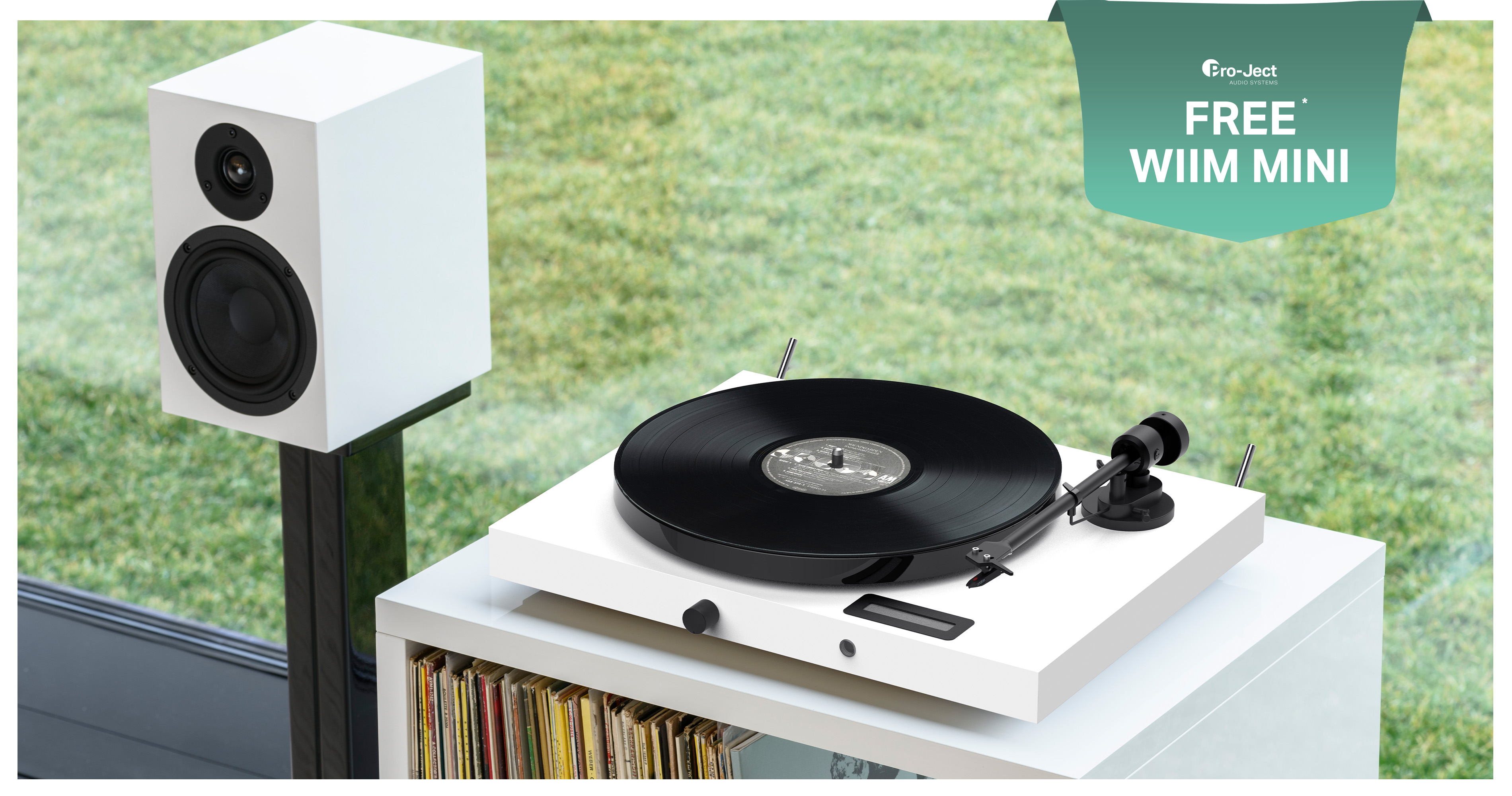 Get a free WiiM Mini with each purchase of a Pro-Ject Juke Box E1 record player, while stocks last.